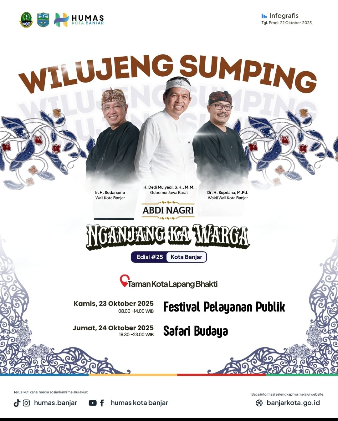Kota Banjar – //DJALAPAKSINEWS// — (22/10/2025), Pemprov Jawa Barat kembali akan menggelar program “Abdi Nagri Nganjang Ka Warga” Edisi ke-25. Kali ini, kegiatan akan dilaksanakan di Lapangan Taman Kota Banjar, Kecamatan Banjar Kota Banjar Jabar, pada 23-24 Oktober 2025.