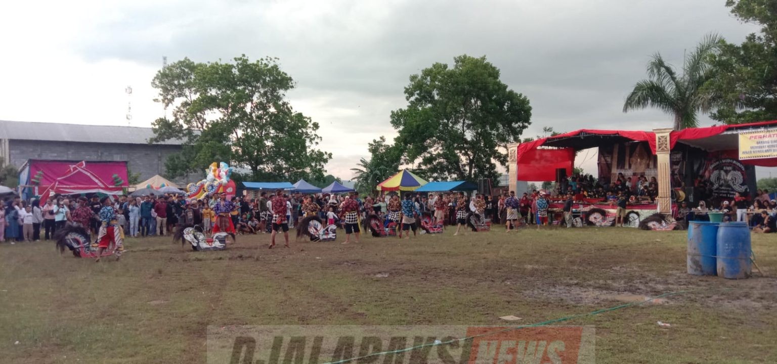 Pagelaran berlangsung meriah dengan atraksi reyog, jaran kepang, dan musik gamelan yang memukau penonton. Suasana kebersamaan terasa kental, menggambarkan semangat gotong royong dan kecintaan masyarakat terhadap seni tradisi.//F03/Bang_Ali//.