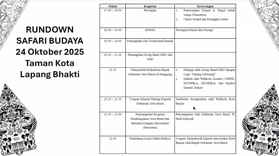 Beliau juga menegaskan bahwa kegiatan ini merupakan agenda resmi Pemerintah Provinsi Jawa Barat, sehingga Pemerintah Kota Banjar berkomitmen untuk menyukseskannya. Tambahnya.