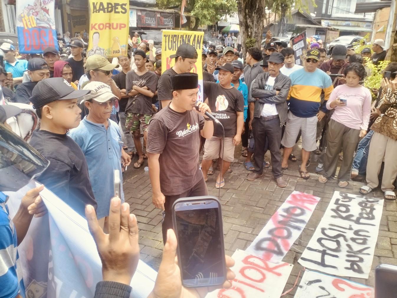 “Kami selama ini menunggu kejelasan terkait kasus ini. Akan tetapi tidak ada tindak tegas, bik dari aparatur desa, camat hingga inspektorat. Kami melakukan aksi karena menuntut hari ini juga Dono Samuri (kades) turun dari jabatannya, ” seru Koordinator Aksi, Ahmad Ihya (40), warga setempat.