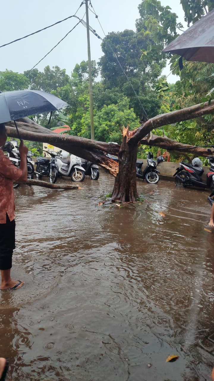 Hingga malam hari, petugas masih berjibaku membersihkan sisa material di beberapa titik, terutama di area padat kendaraan. Tidak ada korban jiwa dilaporkan dalam kejadian ini, namun sejumlah kendaraan mengalami kerusakan ringan akibat tertimpa ranting dan serpihan bangunan.