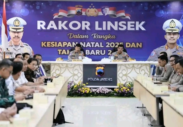 Semarang – //DJALAPAKSINEWS// — (08/12/2025), Menjelang masa libur panjang Natal 2025 dan Tahun Baru 2026 (Nataru), Polda Jawa Tengah menggelar Rapat Koordinasi Lintas Sektoral (Rakor Linsek) sebagai langkah strategis memantapkan kesiapan pengamanan. Rakor berlangsung pada Jumat pagi di Aula Lantai 2 Mapolda Jateng dan dipimpin langsung Dirlantas Polda Jateng, Kombes Pol Pratama Adhyasastra.